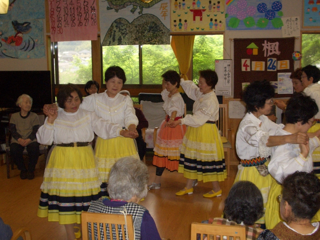 今日は、宇野婦人会のフォークダンス部の方々が、楓にフォークダンスを披露しに来てくださいました。