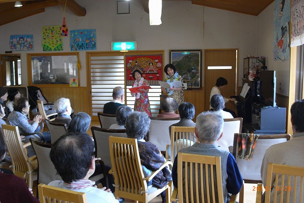 童謡に唱歌、歌謡曲と幅広く利用者さんに馴染みのある曲を披露してくださり、利用者