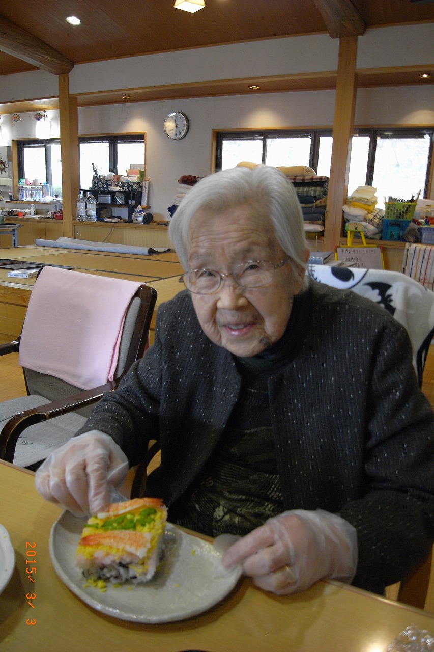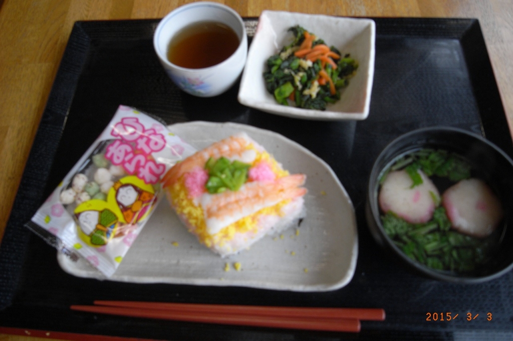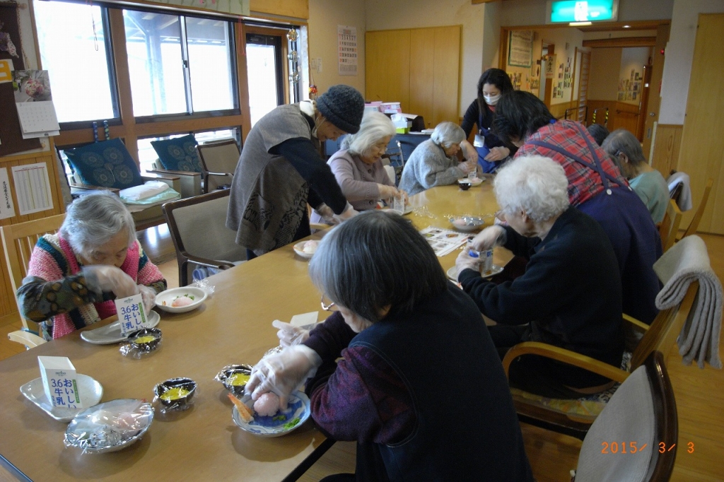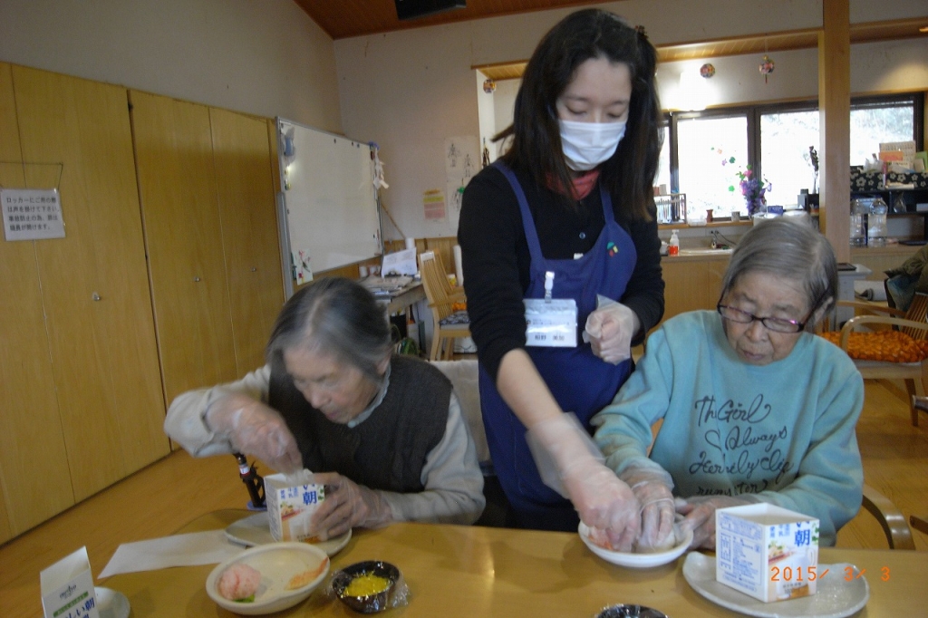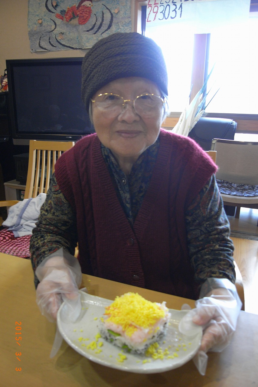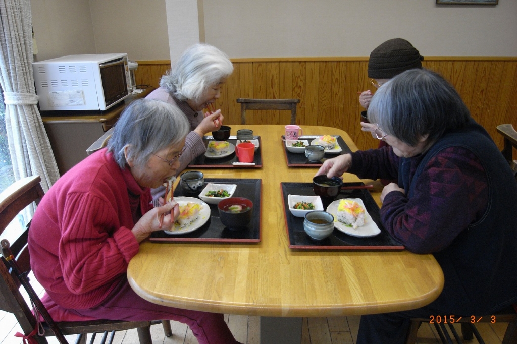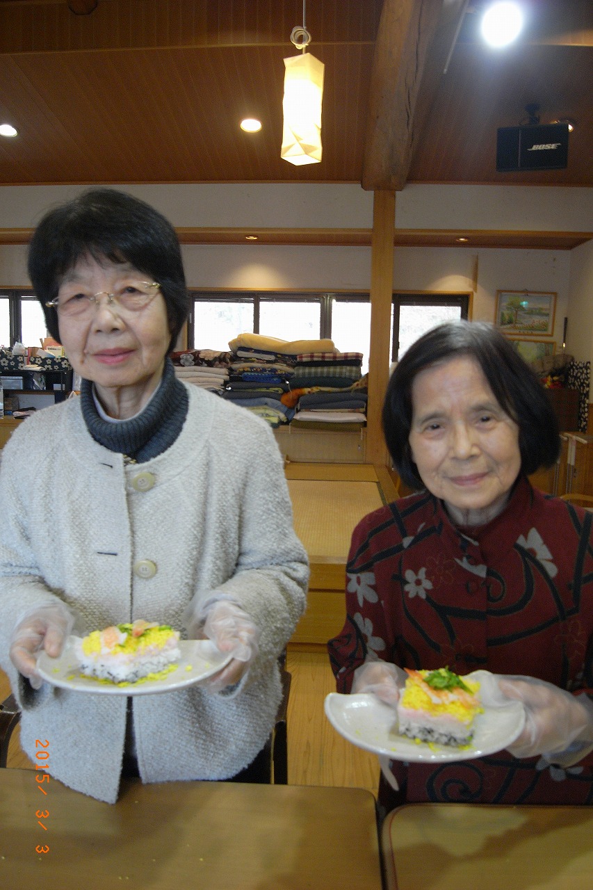 山の家では、皆さんと一緒に『雛ちらし』を作りました