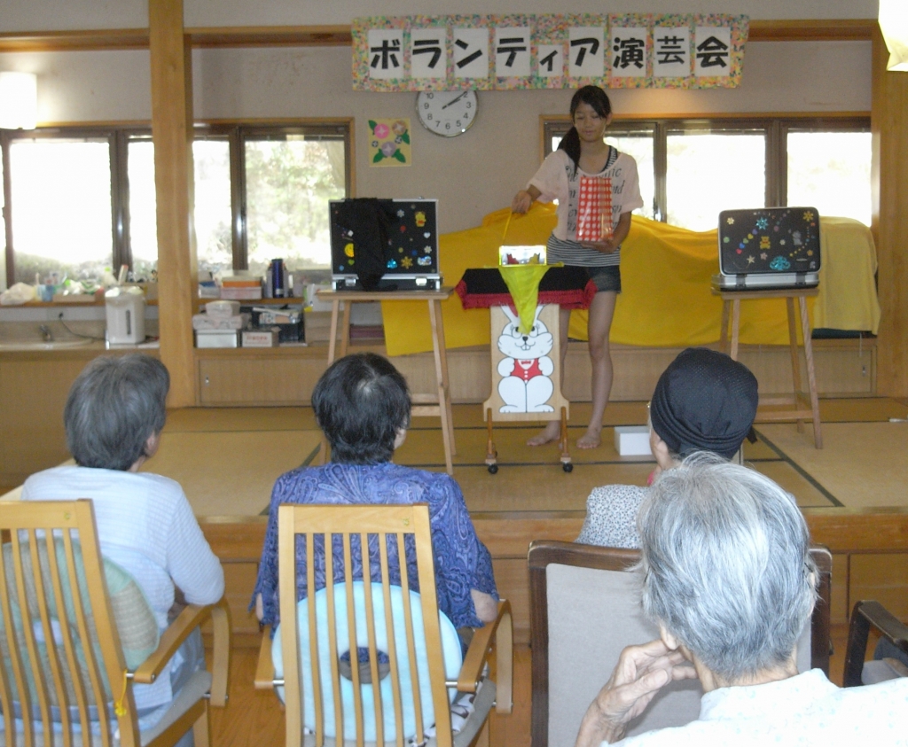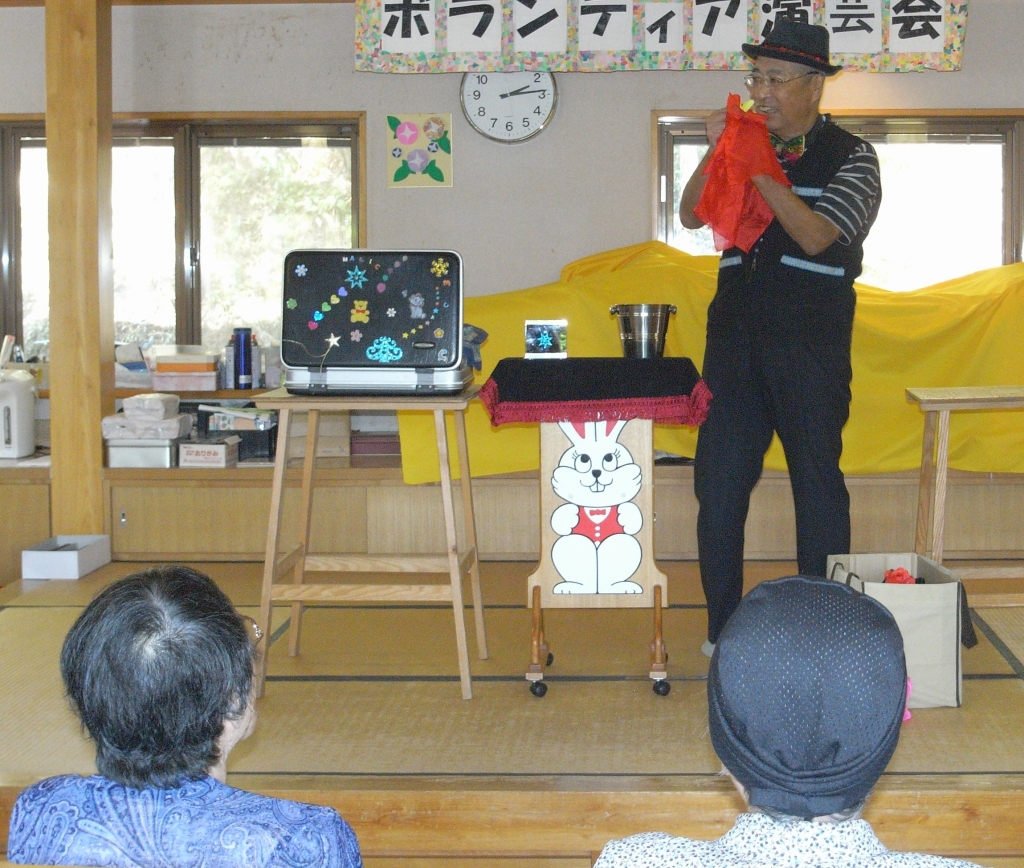 朝、晩には いくぶんか過ごしやすくなりましたが日中は、残暑が続いています。そんな中、楓に玉野奇術クラブの方が来てくれました。