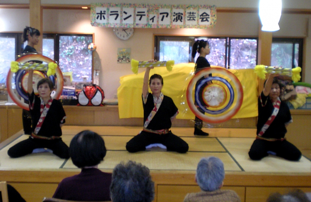 披露してくれたり、銭太鼓と花笠の共演を披露してくれたり、うらじゃ踊りを披露してくれ