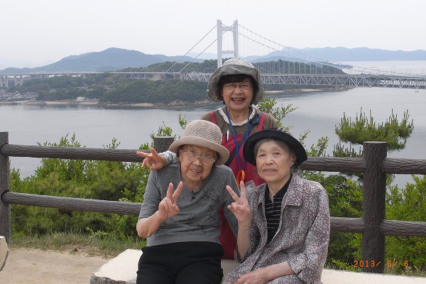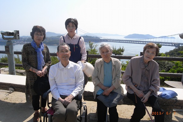 利用者さんの中には瀬戸大橋を造る作業をしていた方がおられ、指を指して