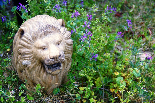 そして野の花に埋もれて睨みをきかすライオンの焼き物。