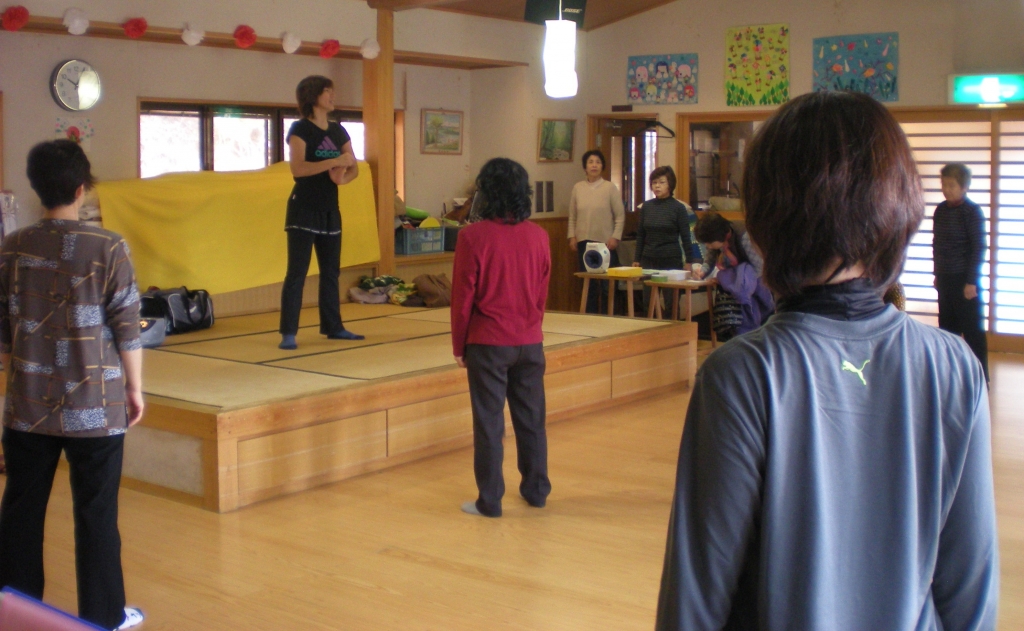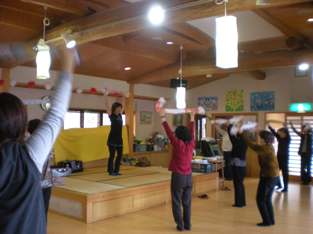 深呼吸から始まり、リズムに合わせて体を動かしていきました。