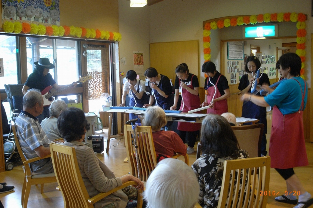 今年は、職員で『バラが咲いた』、『青い山脈』を合奏しました。