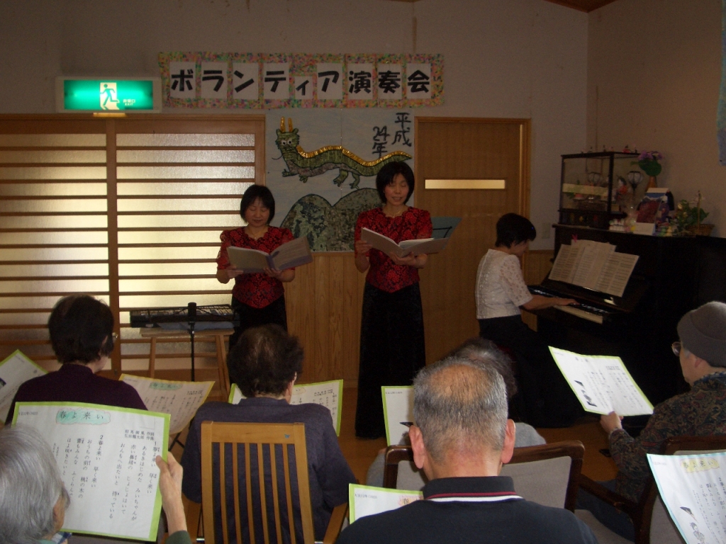 「春の小川」「おぼろ月夜」「春よ来い」「花」などなど、ボランティアさんと一緒に