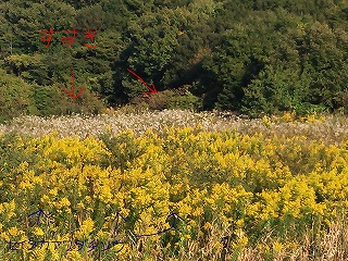 奥の白い帯が「すすき」手前の黄色いやつらが「セイタカアワダチソウ」です。このままいくと白い帯がなくなりそうです