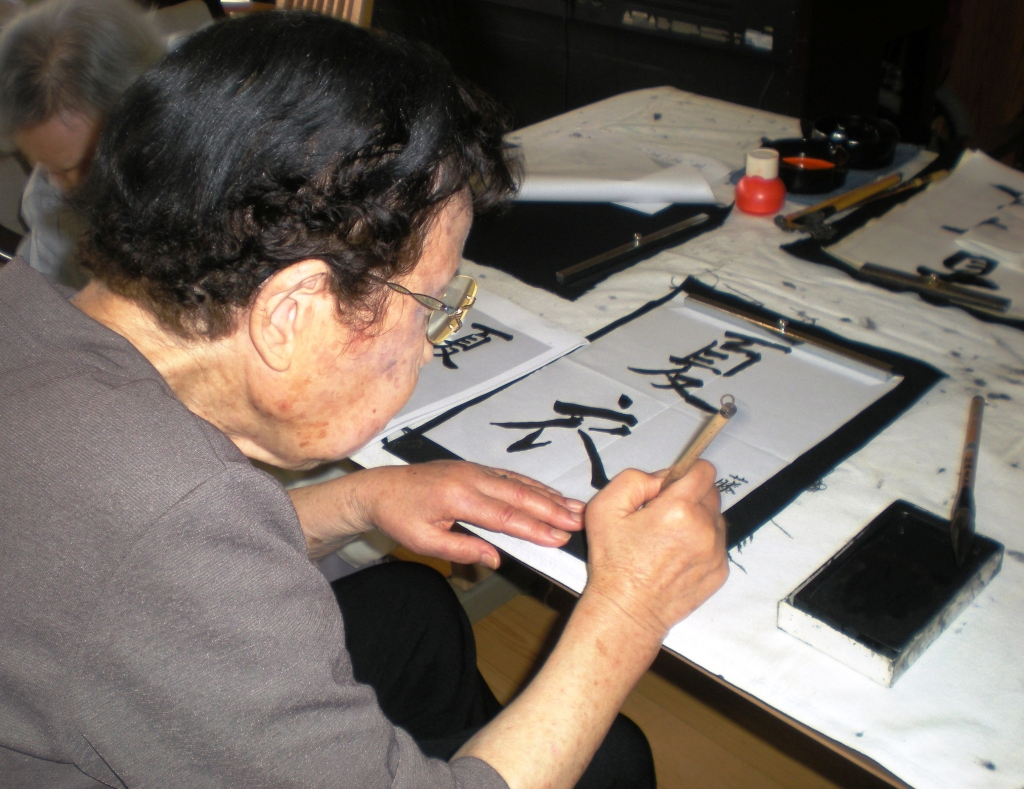 さあ~、それでは真剣にお清書をしている姿をどうぞ