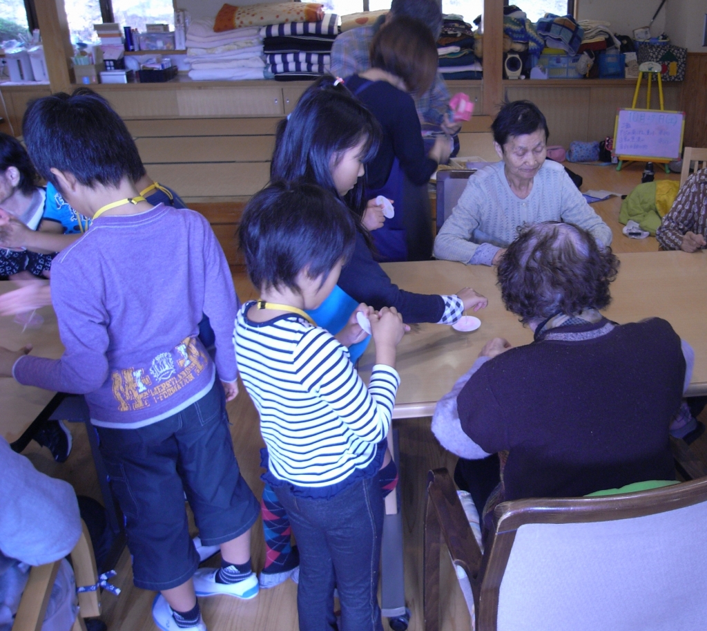 子ども達が、紙芝居をしてくれたり、一緒に秋の歌を歌ったりして過ごしました。