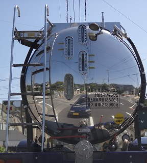 例えばピカピカの「タンクローリー」の後ろを走っている時に、自分の車が映ってて嬉しくなりませんか?思わず写真を撮ってみました。