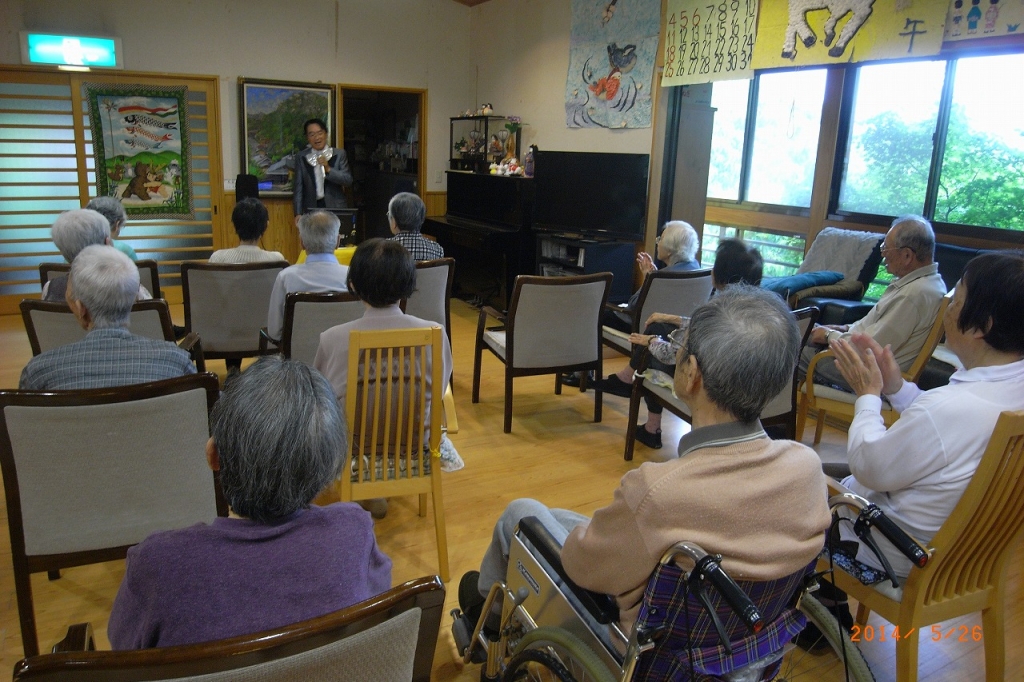 素敵な原さんの歌声に利用者さんはうっとり(*^^*)利用者さんのリクエストも聞いてくださり和気藹々と過ごした時間でした。原さん、今度は北を目指してボランティアをして行くそうです!体に気をつけてたくさんの利用者さんを感動させてあげてくださいね♪