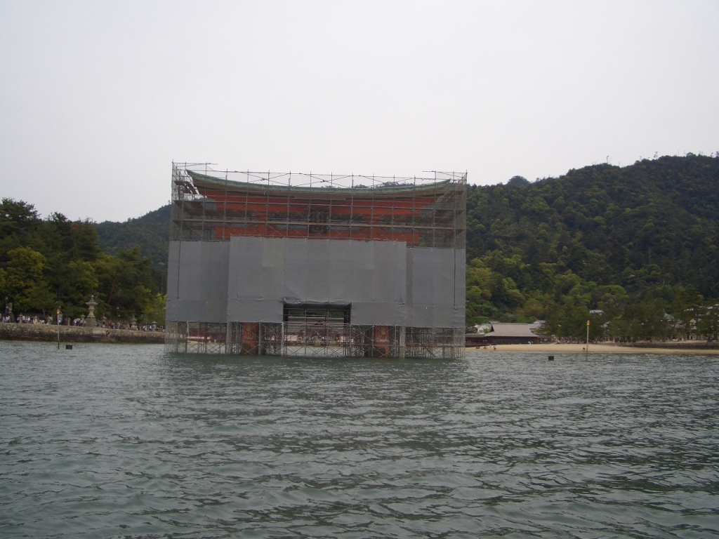 そうなんです。厳島神社の大鳥居は4月初旬の春の嵐で銅板が8枚も飛ばされたそうで