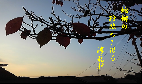 「命尽きようとしているカマキリが一生懸命、色濃いリンドウに縋りついている様子」だそうです。