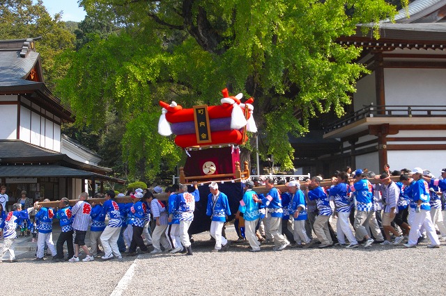 吉備津神社ではちょうどお祭りでお神輿が出ていました。