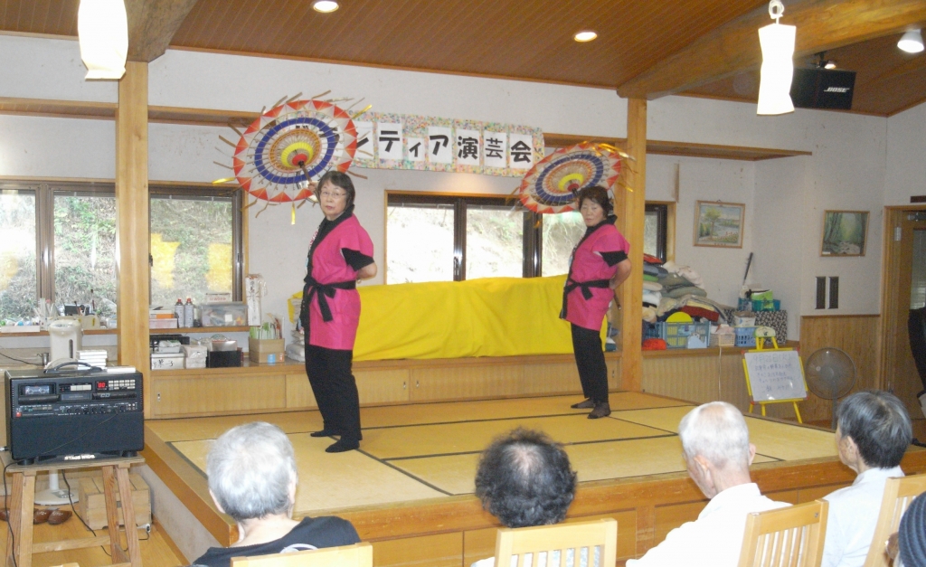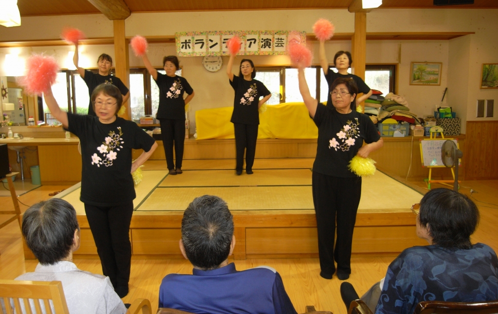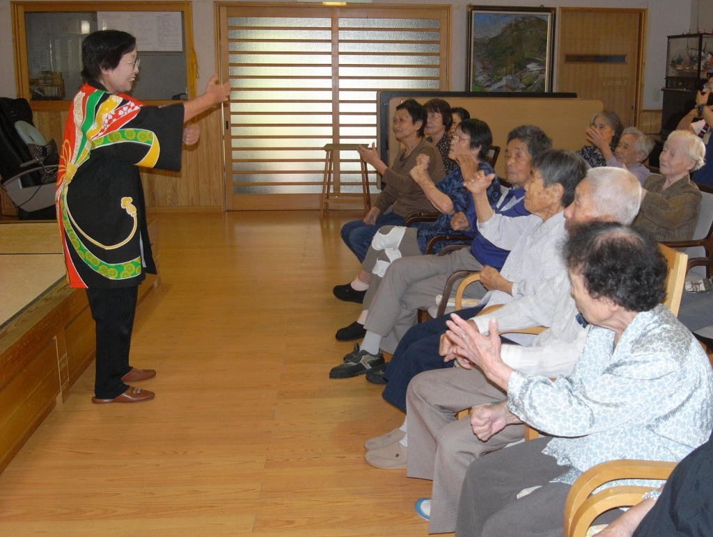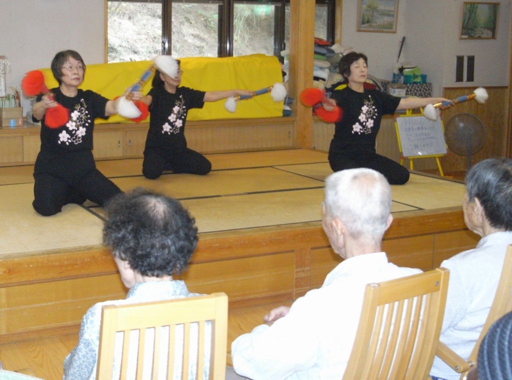ある日の午後、楓に荘内で活動されている銭太鼓の方々が来所してくださいました。