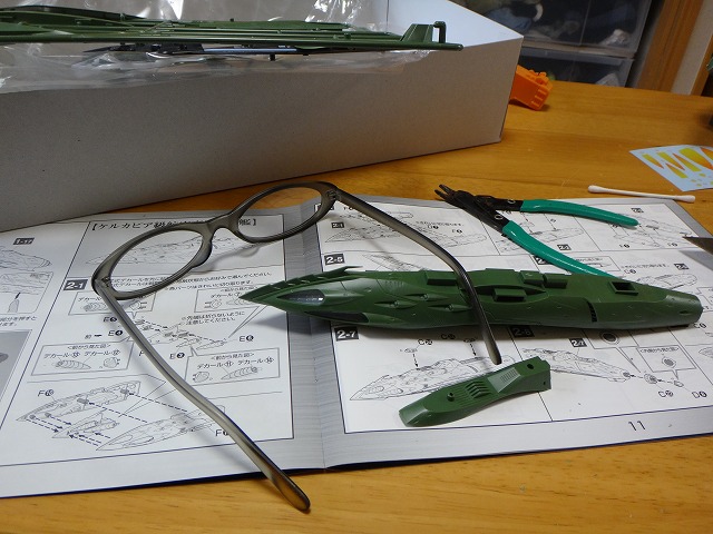 ひゃ~かっこいい。最近のプラモは接着剤をほとんど使いません。細かい部品があって、老眼鏡が必須です。