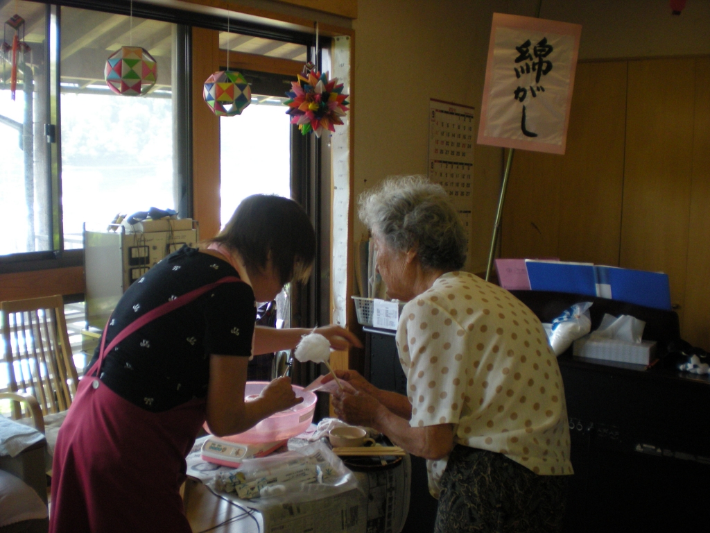 午後からは、職員が屋台を担当し綿菓子・ヨーヨー釣り・人形焼・カキ氷をしました。