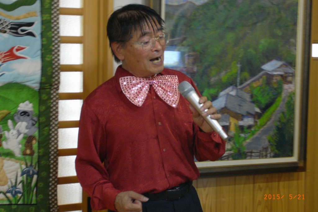 利用者さんが喜ぶ歌謡曲を歌ってみなさんを笑顔にしてくれました。