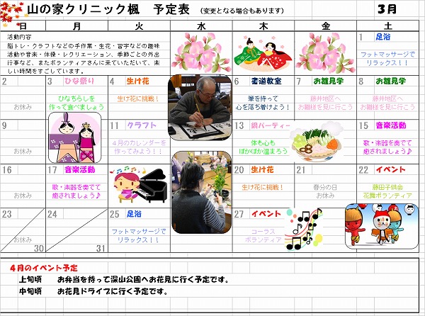 デイサービス楓では季節に応じて外出や行事を行っています。