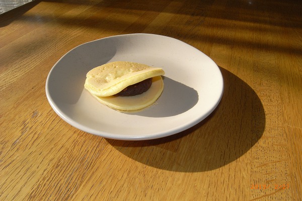 熱々の生地にあんこを挟んだらすぐ口に入ってしまい、食べている時の写真を撮ろうと